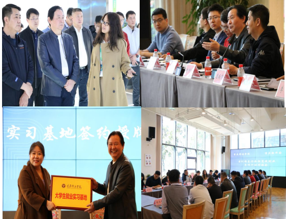 在重庆软件园总裁助理简雪燕的带领下,学校一行12人参观重庆软件园展厅,随后在重庆软件园SW众创空间进行座谈交流。首先校长助理陈仲华从学校概况和办学特色两个方面介绍学校整体情况;随后重庆软件园产业与人才学院石琳艳院长对重庆软件园人才政策进行讲解;接着参会企业分别对本企业的发展情况和人才需求进行介绍;再次学校与重庆软件园、天合智控科技(重庆)有限公司、重庆骏成发展文化传媒集团有限公司、重庆三辰影科技有限公司、重庆亿众数字能源科技有限公司等5家企业签订校企合作协议;最后学校校长张德民进行总结讲话,他首先感谢重庆软件园的精心组织,同时也希望以此次访企拓岗为契机,进一步加深双方的互动交流。