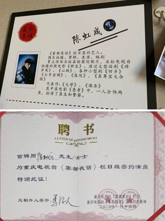 这是从北山书院走出去的“明星”演员——陈虹成同学在领奖舞台上受到的评委褒奖和日常工作中同事发来的求助。