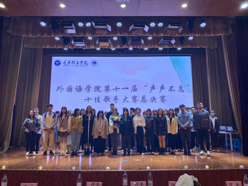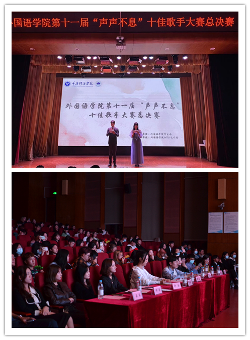 为营造外国语学院文化氛围,为师生们提供展现青春风采的舞台,使热爱唱歌艺术的同学得到展示自我的机会,特此外国语学院于10月10日19点在下里巴人剧场开展外国语学院第十一届“声声不息”十佳歌手大赛总决赛。莅临本次比赛的评委及嘉宾包括钓鱼城科幻学院首席女高音谭琛老师、艺术部教师黄丽萍老师,外国语学院团总支书记吕戈老师及各板块指导老师。现场250多名同学共同见证了外国语学院十佳歌手的诞生!