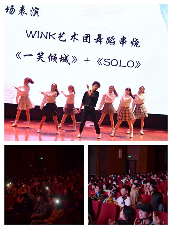 外国语学院WINK艺术团为大家带来中场表演舞蹈串烧《一笑倾城》、《solo》。动感的舞蹈活跃现场气氛,现场欢呼声不断,掌声雷动,同时也提高了观众对本次比赛后续的期待值。
