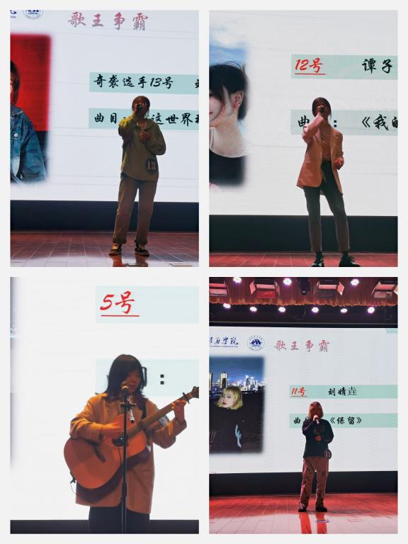 在主持人介绍完规则后,谭妮同学带来的歌曲《lose yourself》正式拉开本场比赛序幕。由冯馨月同学演唱的《温室花朵》一开口便让全场沸腾,精湛的唱功引来观众们阵阵欢呼。周渝同学用精致的戏腔完美演绎歌曲《繁华唱遍》,博得掌声一片。每一位选手都以其独特的舞台魅力与精湛的唱功,给听众们带来极致的听觉体验。
