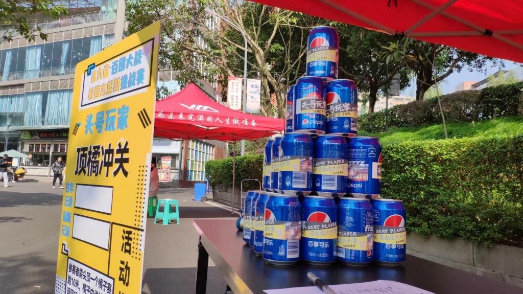 冬至将近,寒风袭来,第九届百团大战的举行给冬日带来了温暖。70个项目涵盖体育类、竞速类、休闲类、文化类、技术类、益智类7个类别,花样层出,精彩不止。24日于图书馆、A食堂下广场、天渠书院小广场开展百团预热活动,由舌尖上的惊喜、为你发光、顶橘冲关、可乐保龄球、扔镖六大热门项目组成,充分调动玩家们的期待与热情,为百团的正式开始打下基础。同时为保证活动的正常开展和提高师生的防控意识,百团现场专设疫情防控值班点,引导同学们安全有序地进行挑战。