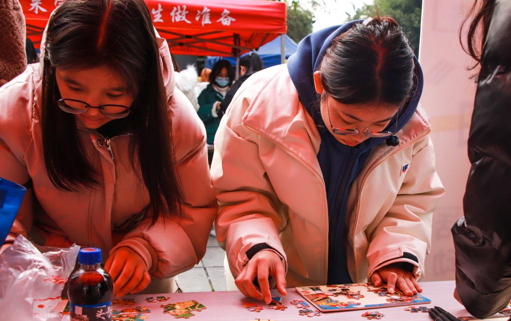 社团助力,文化体验,谁与争锋。花卉协会、魔方社、美食协会、军事爱好者协会等社团通过设置与社团文化相关联的挑战项目,让移通学子在挑战中体验文化、在趣味中发现热爱。美食协会紧跟热门影视《鱿鱼游戏》推出抠糖饼—糖饼挑战项目;花卉协会将一束束花名印刻在同学们脑海中以寻找花海的记忆;魔方社通过双手的扭动让同学们体验魔方世界的速度与激情;军事爱好者协会以知识竞答助力军事热血梦想。同学们不断挑战专项,发掘自身潜能,拼尽全力一战到底。
