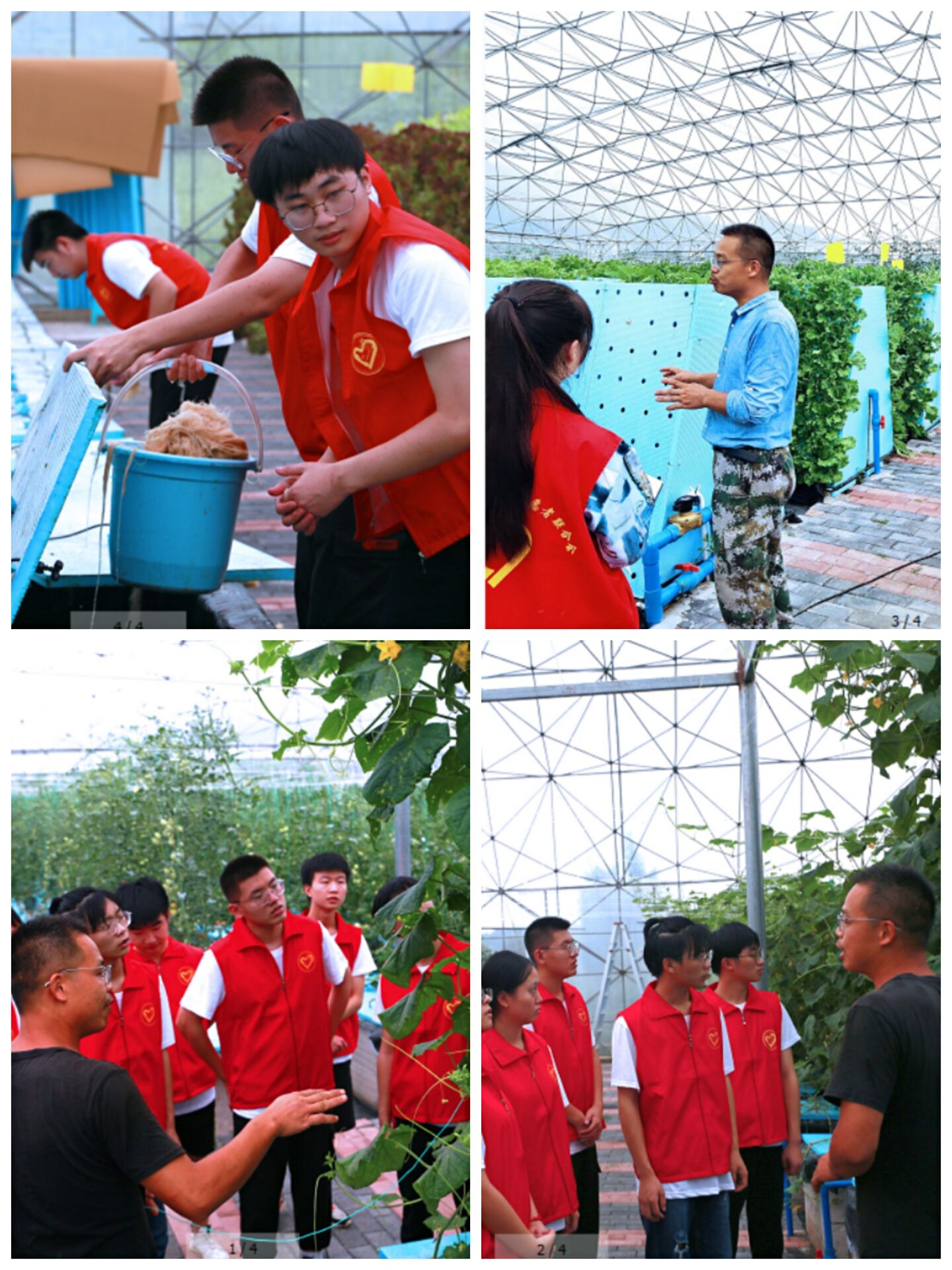 7月11日,农耕协会科技支农帮扶团的志愿者们来到了花园社区的蔬菜大棚,学习无土栽培的技术并进行实践。立足一日的劳动成果,志愿者们帮助湛老师将成熟的黄瓜收入箱子,并将营养液清理干净,帮助湛老师解决了一定的麻烦。志愿者们在辛苦劳作的同时对无土栽培有了更深层次的了解,明白了新型农业的种植方式。通过这次实践,志愿者们也意识到“互联网”对我们的重要性,认识到我们应该拓宽我们的眼界,学习利用互联网进行现代农业建设,学会做一个有创新,有远见的开拓者和建设者。