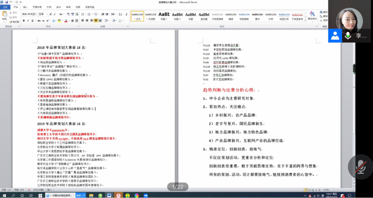 然后,淬炼·国际商学院领导力课程教研室主任李丹老师对比赛策划书写作要点进行讲解。李丹老师结合赛会发布的文件对策划书的框架内容以及评分标准进行介绍,使同学们对比赛要求有了大致理解。鉴于多数同学缺乏参赛经验,李老师通过对往届大赛获奖趋势为同学们提供了三个思考方向:一、以中小企业为主体,放弃为知名企业设计华而不实,缺乏实用性的策划,考虑企业实际需求和策划的可实践性。二、紧扣痛点关注热点,例如打造乡镇品牌、老字号品牌、地方特色品牌以及互联网品牌的振兴计划。三、创新创意落脚点在精准定位上,活动的策划是基于对于市场、产品以及客户的准确分析。李丹老师的分享帮助参赛经验不足的同学们完成破题,加深了对比赛要求的理解。
