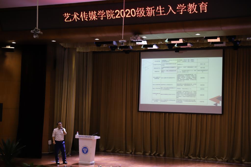 2020年9月21日至9月22日,艺术传媒学院在下里巴人剧场、第三教学楼开展了2020级新生入学教育。学院副院长李克伟老师、学院团总支书记陈婷婷老师及2020级新生辅导员安珈璇老师、卢伯年老师、李欢老师共同为刚刚步入大学校园的2020级同学们带来了意义非凡的大学“第一课”。