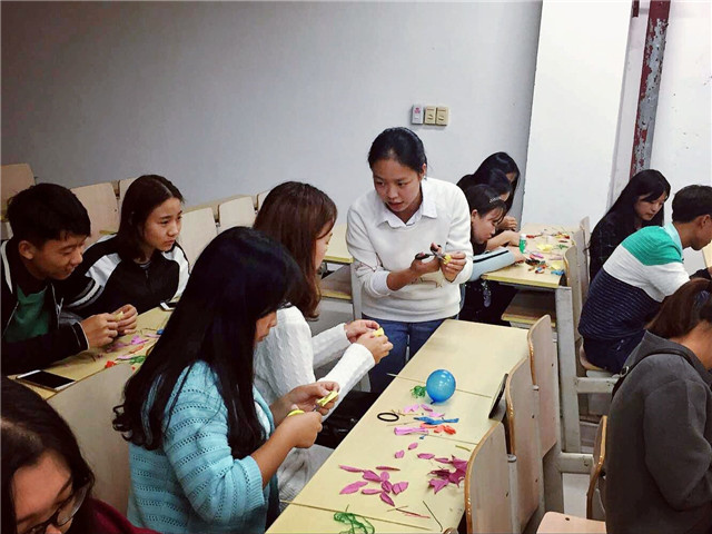 虽然它的制作有一些难度,但在我们的指导下,一朵朵精美的格桑花在同学们的手中逐渐成型,那娇羞的样子仿佛真的格桑花就在眼前,屋子里仿佛还能闻到它淡淡的香气。中间,我们还用“点名”的方式让社员们进行自我介绍。被点名的成员则直呼:“城市套路多,我要回农村!”。一时间,欢声笑语充满了整个教室。活动虽小,却让同学们在繁忙的学习中,放慢了脚步,感受到别样的大学生活。