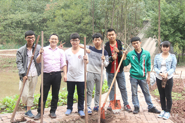 翻土工作组的同学可谓最辛苦,他们站在泥泞之中也显得那么潇洒。在田间地头,他们挥汗如雨,挥洒他们别样的青春。有时候挖到较大大的石头,他们还要将石头挖出来,抬到空地上有序地堆放着。