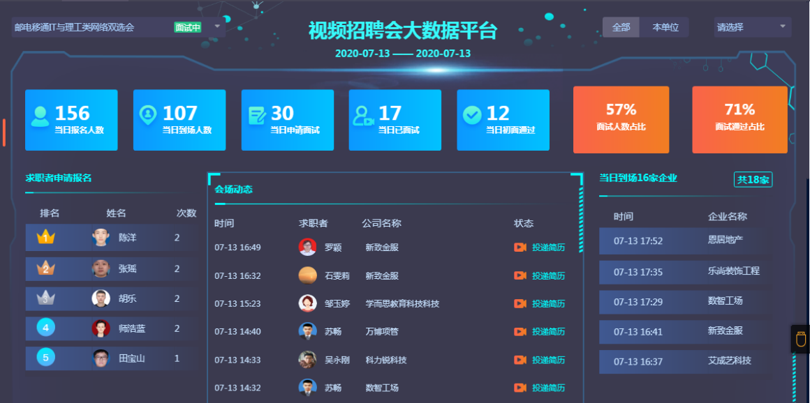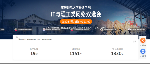 为了保证我校2020届毕业生就业工作不断线,虽暑期已至,但就业工作不止。为更好地帮助学生就业,解决学生的就业问题,就业创业指导与服务中心暑期期间为2020届毕业生与企业搭建交流平台,举办网络双选会。2020年7月13日,由就业创业指导与服务中心主办,大数据与软件学院、智能工程学院、中德应用技术学院承办的IT与理工类网络双选会在汇博人才网举办。
