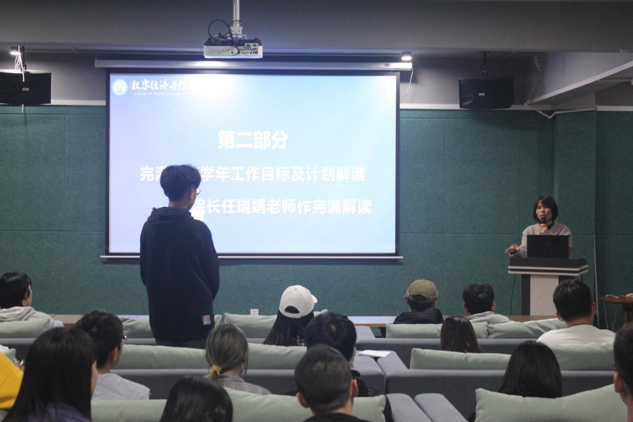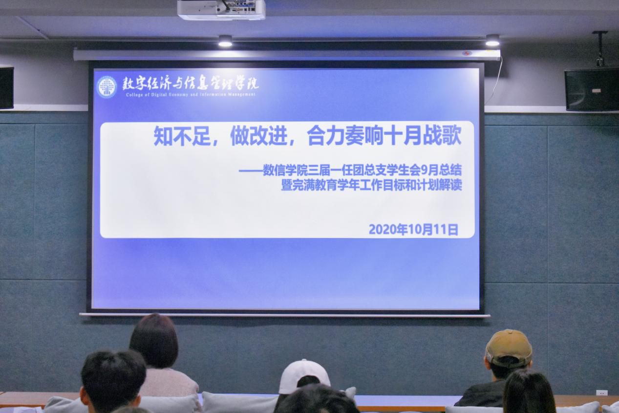 时间给勤奋者以荣誉,九月已完美落幕,新的挑战接连而来。为让团总支学生会各部门在之后的工作中有明确的工作方向和规划,数字经济与信息管理学院于10月11日18时30分在爱莲书院多功能影音室召开了“知不足,做改进,合力奏响十月战歌”之数信学院三届一任团总支学生会9月总结暨完满教育学年工作目标和计划解读,本次会议有幸邀请到数字经济与信息管理学院学工副院长任瑞娟老师来为团总支学生会的各部门部长进行工作评价与指导。