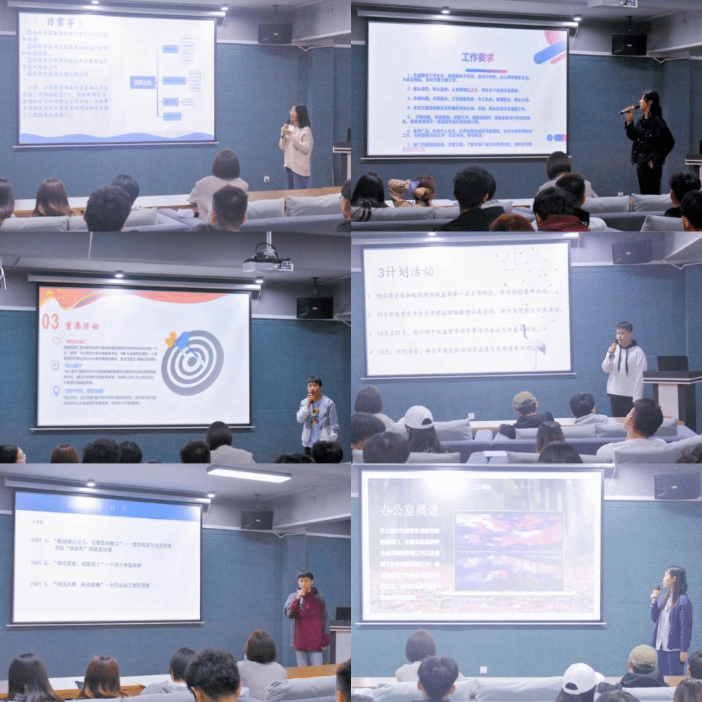 总结完毕之后,任老师对各部门的工作都做出了详细的反馈,一一点评,简单指出问题,改进工作方向,结合各部门的实际状况,为部门工作目标和规划给出了新的定义。着重强调了举办活动的前期宣传和准备,做到“内宣活跃,外宣突破”,增加活动曝光度和创新性,调动学生积极性,提高活动参与率,让学生主动靠近活动,而不是活动要求学生,逐步解决部分学生活动“边缘化”的问题;在活动准备过程中严走流程,环环紧扣,各部门紧密合作,高效联动,保证活动质量。