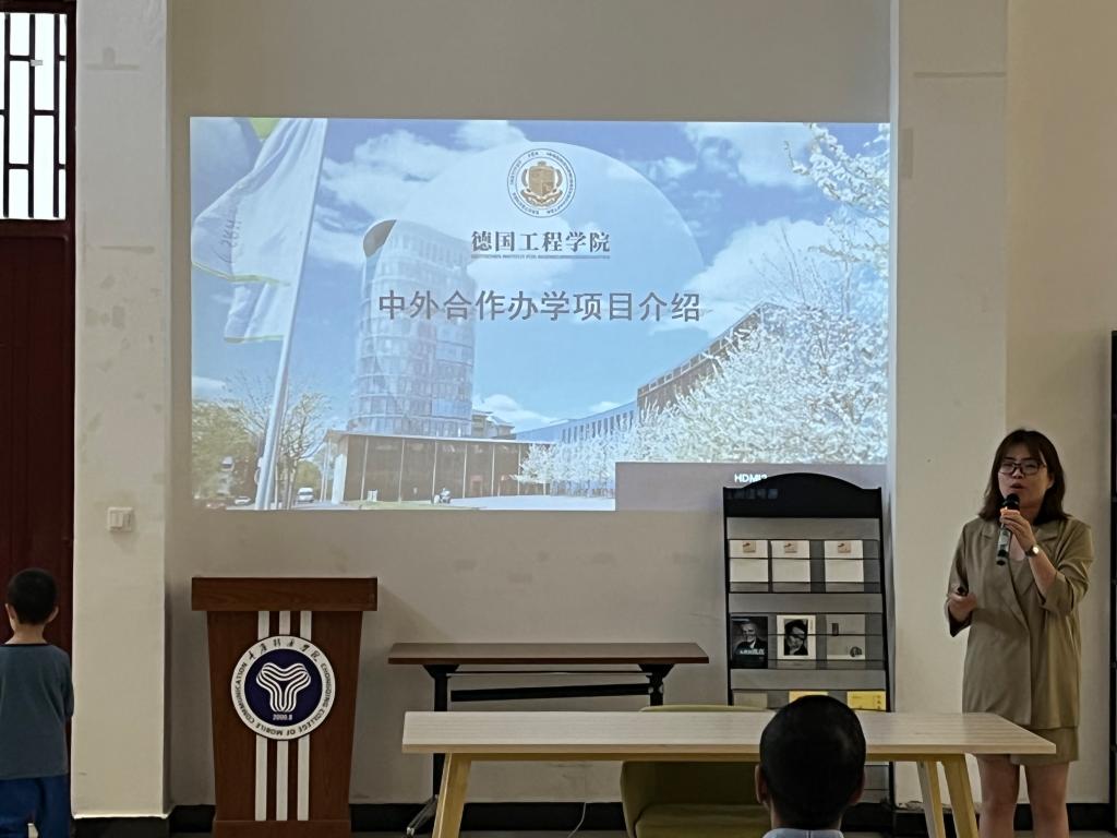 德国工程学院院副院长侯宇晶老师从国际预科项目类型、培养模式、项目流程等方面介绍了集团中外合作办学项目。该项目联合德国安哈尔特应用技术大学、德累斯顿工业大学、梅泽堡应用技术大学、埃森造型艺术学院等著名大学预科,为学生前往德国深造提供机会,是高中生直通德国名校途径之一。有意向的学生由国际预科项目,结合学生高考成绩及学生意愿,规划留学德国途径,国内学习半年或一年学习,通过选拨考试后赴德国学习一年预科,达到德国大学入学要求后,进入德国大学本科3年学习。侯院长提出,德国工程学院引进德国大学的教育资源与质量保障体系,按德国高校标准制定科学、规范的国际化课程体系,采用原汁原味的德国育人模式,让学生渐进式接轨德国教学,助力海外学习和毕业生实现高质量升学与就业,走向更广阔的未来。