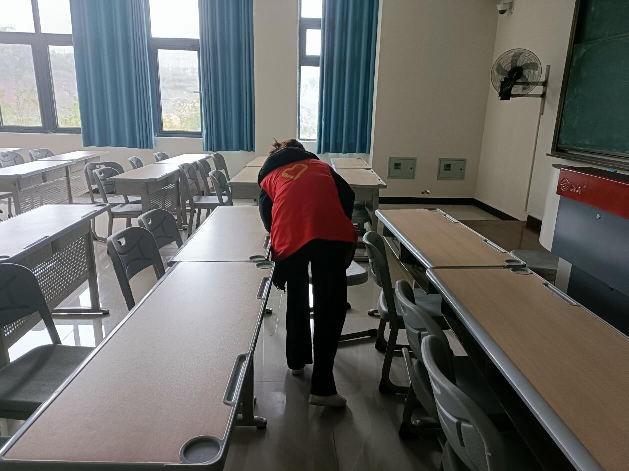 通过检查教室内物品遗留问题、确保开关与电闸正常关闭,相关电线没有损坏,并将发现的遗落物品记录在册,黑板上留下失物招领处的联系方式,以便同学能够找回,会顺手关掉电源,预防电器失火问题。本次活动在美化教学环境的举动中也为老师与同学们提供舒心的学习环境,为老师和同学们营造良好的课堂环境,“校园天使”志愿服务活动传承“奉献,友爱,互助,进步”的志愿者精神,营造“失物易找、乐于助人、友好团结”的校园氛围,进一步将我校完满教育理念落到实处。