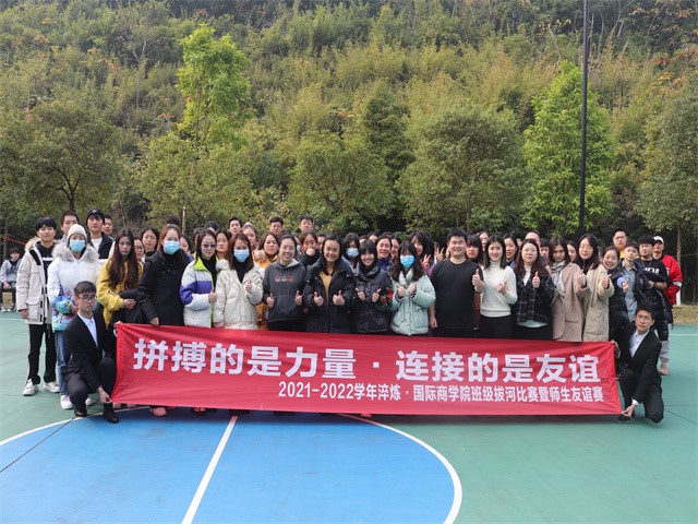 为了增强师生们的体育锻炼的意识,提供展现集体风采的舞台;为了增强班级同学间的交流协作,增进彼此间的友谊,进而增加团队凝聚力、默契度;为了加强师生间交流,打破固有刻板的师生关系印象,以师为友,与友共乐。让老师和同学们走出课堂,展现我院师生新风采、新精神,弘扬意志坚强、服从大局、团结友爱的精神。021-2022学年淬炼·国际商学院班级拔河比赛暨师生友谊赛于12月8日下午在鱼城书院外篮球场开展。