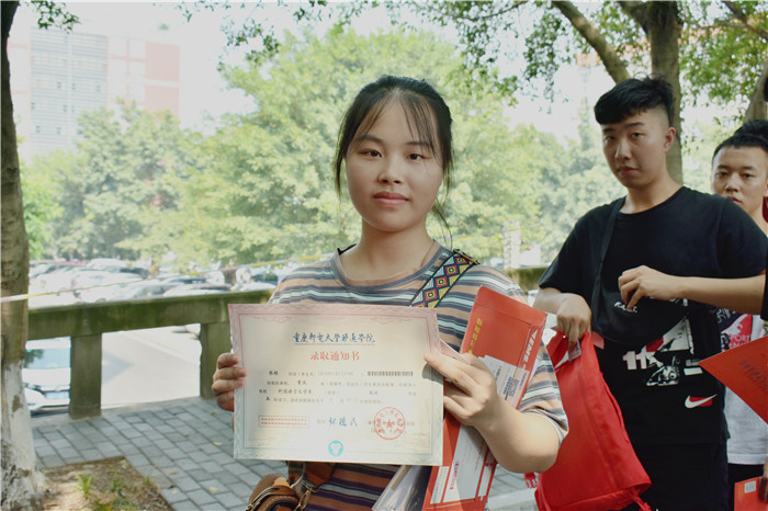 通信与物联网工程学院李玥的家长站在三教外等待院系报答的孩子,她说:“移通看起来很不错,教室都很多很大。重庆和我们家乡宁夏生活习惯还是很不一样,口味什么的差异都很大,希望孩子慢慢习惯吧。”