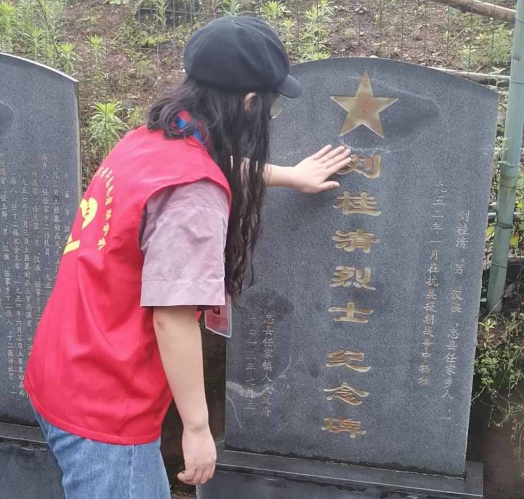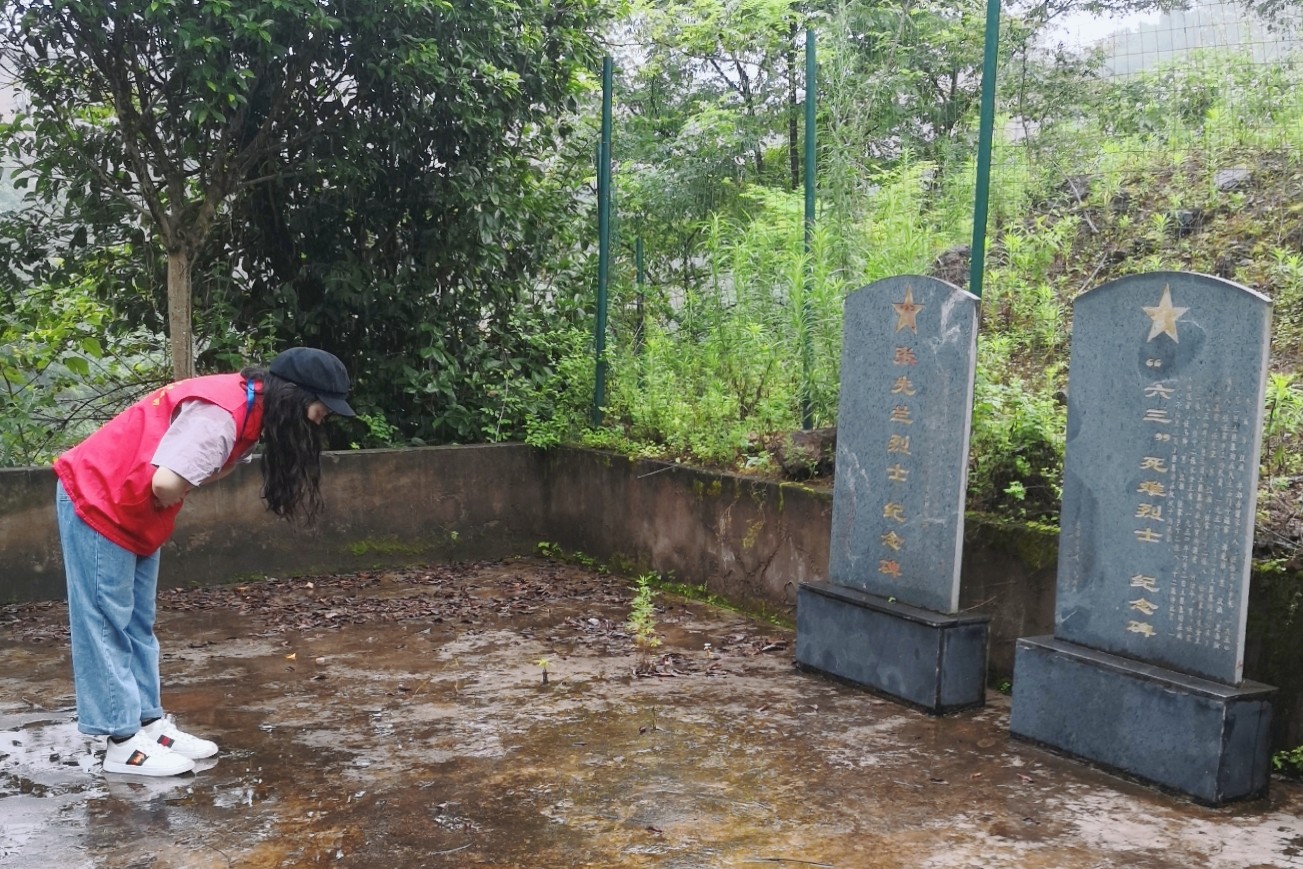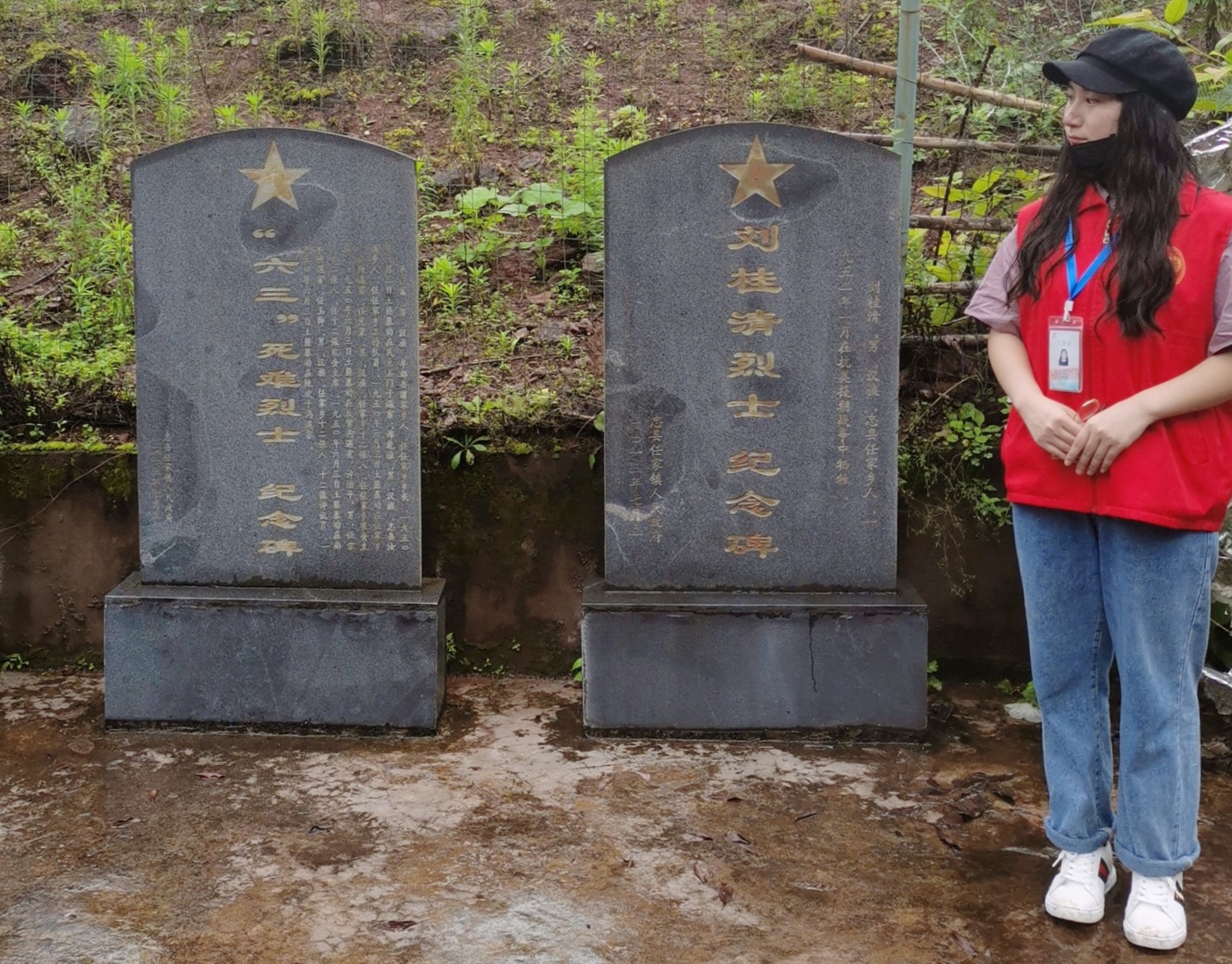 同天,在重庆忠县的“红色感召”魅力传承先行队队员王旭伶同学也回到了家乡去追寻英雄红色文化——“六三”死难烈士纪念碑。