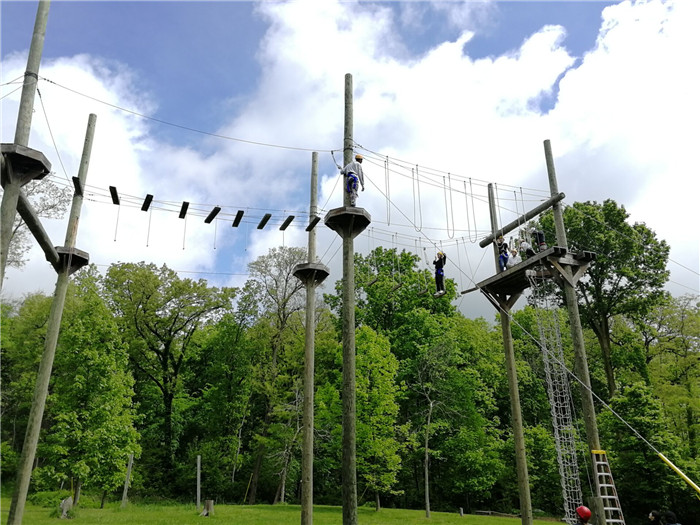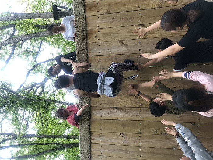 大约8点半,我们到达目的地——stronghold,高空平地拓展开始了。这跟我们学校的拓展训练类似,分为高空项目和平地项目。我们分成两个组,一组上午进行高空拓展,另一组进行平地拓展,下午的时候交换。
