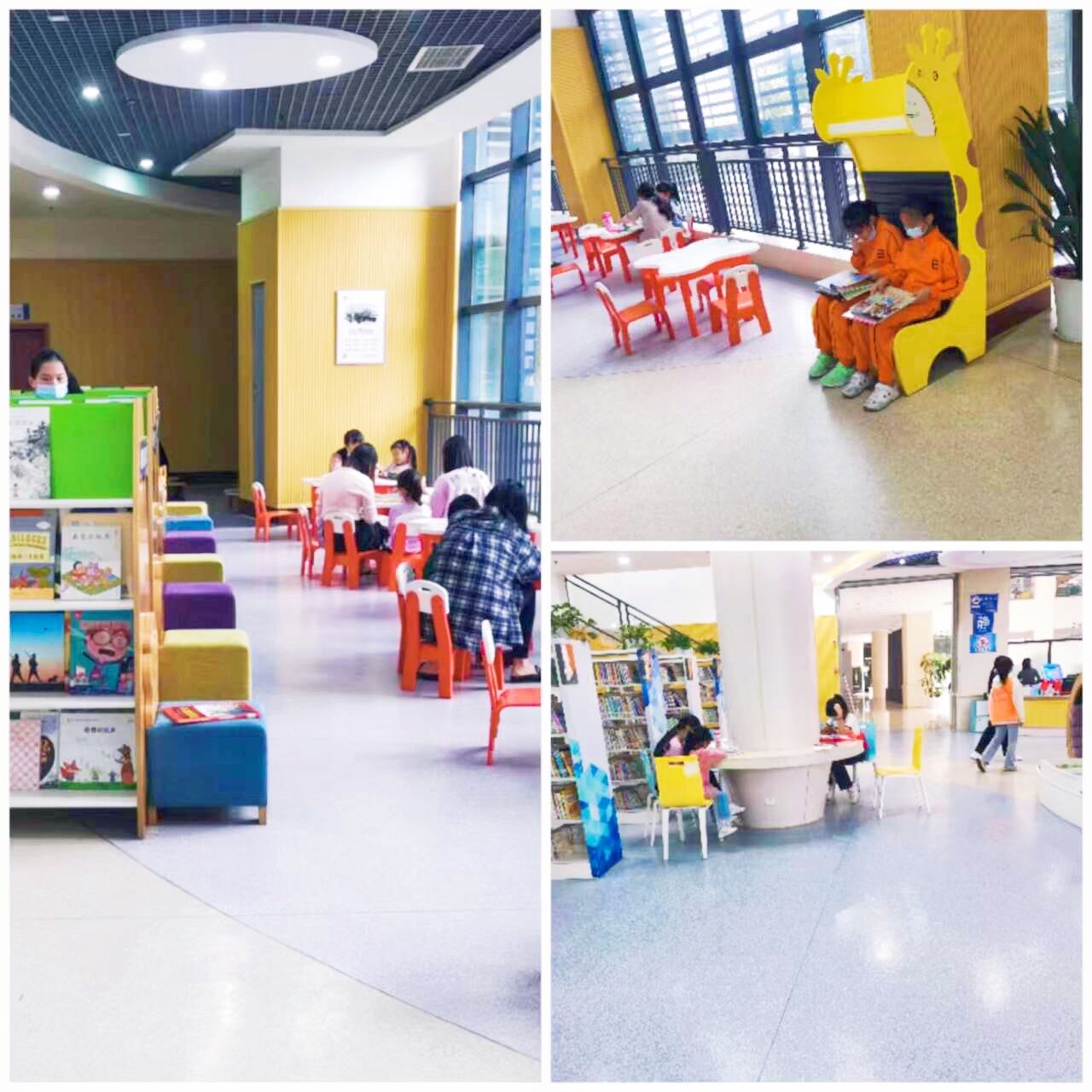 下午2点,三位老师及志愿者们准时在学校大门口集合前往合川区图书馆。许多小朋友在家长的陪同下认真地看书、学习。活动开始之前,志愿者们在老师和图书馆负责人的指导下进行调试设备等准备工作。下午3点,在志愿者的指引下,小朋友们陆续入座,活动正式开始。