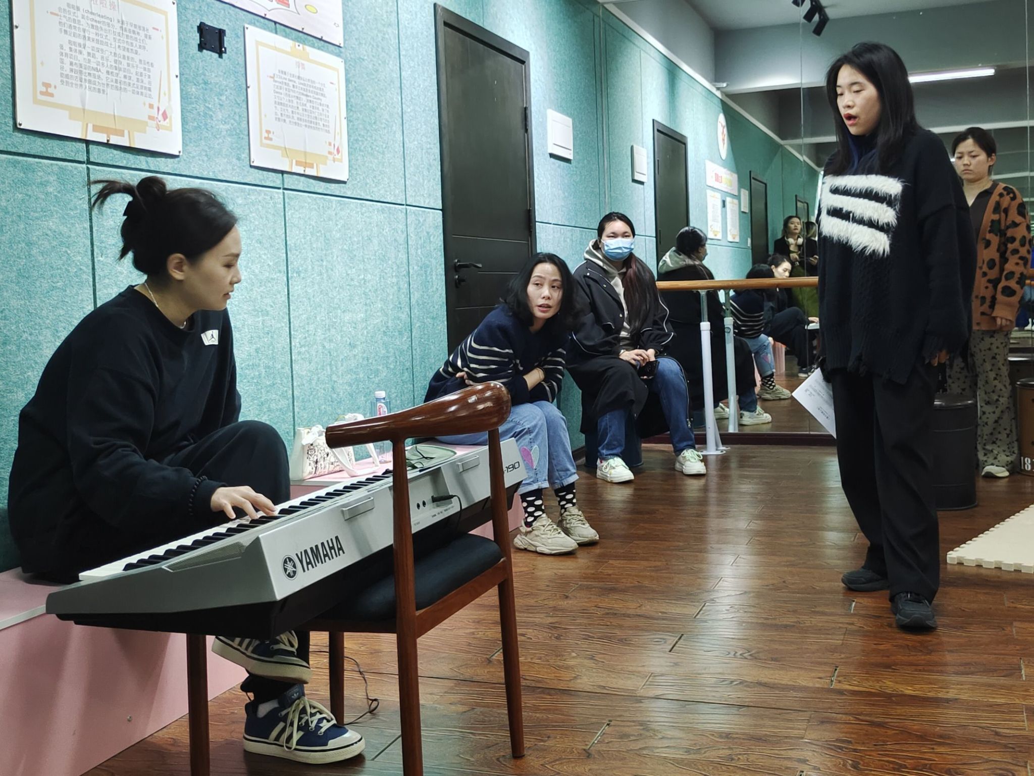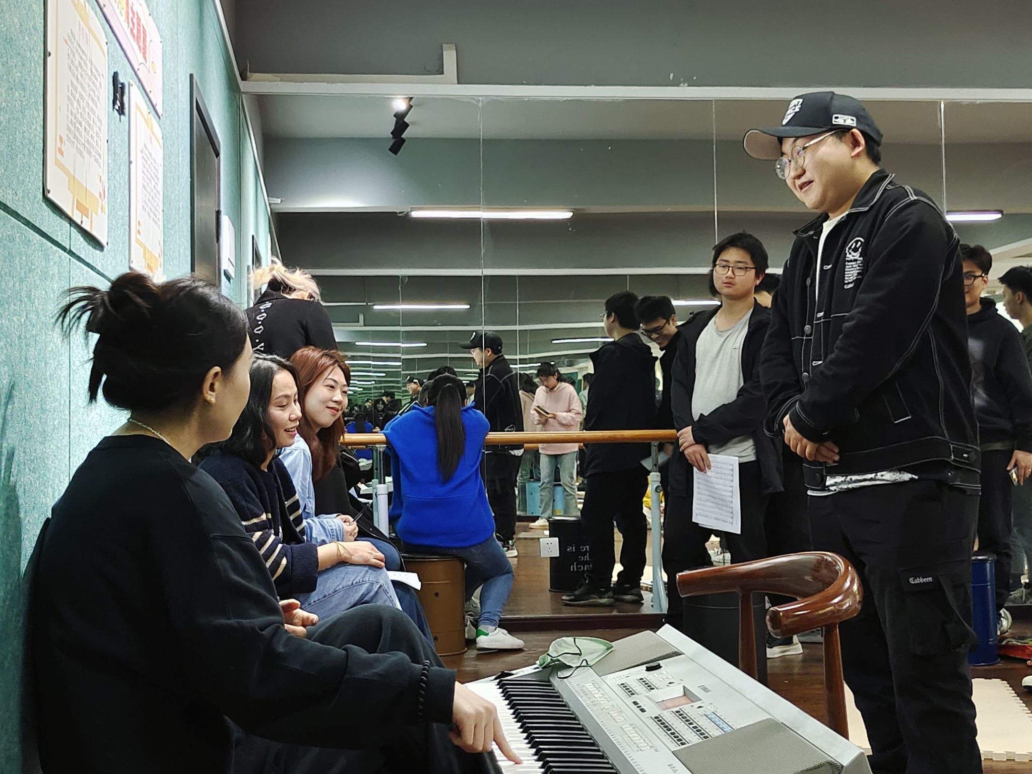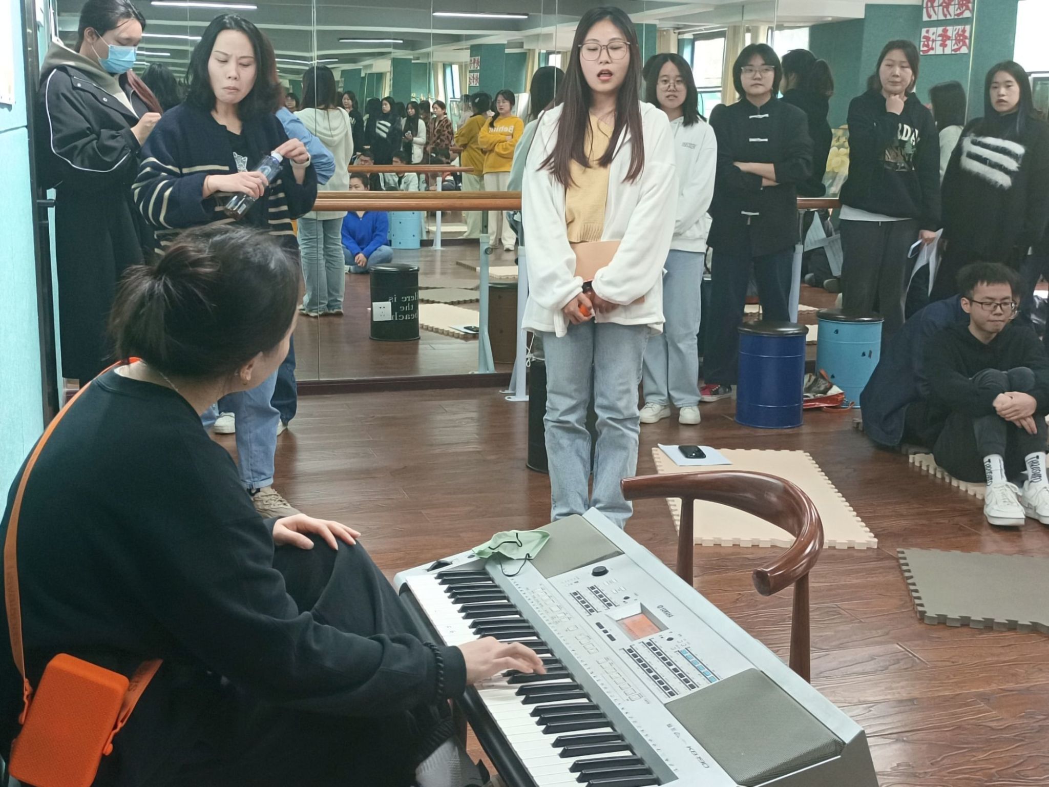 入门后,就需要更高阶的学习,合唱团的老师带领同学们进行了试音训练,同学们大致被分为了高中低音三种类型,基于各个音色的不同,老师们分别教授了一些提升音色的小方法,并分享了阿卡贝拉的和声技巧。通过实践演练和专业点评,同学们学会了如何运用不同的发声技巧、掌握和声和节奏的复杂变化,并且从中汲取表演灵感。