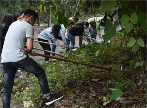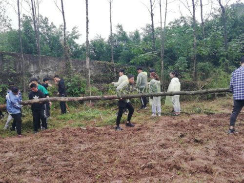 农耕活动最后阶段,由农耕协会相关人员带领全体同学一起清除荒地中的一些枯树以及枯枝等较大障碍物。清除其中一颗较大枯树时,甚至需要几个人合力才能进行搬运,这时也体现了同学们的团队协作能力,正是因为团队,才使得农耕活动顺利地开展,也正是因为团队,同学们之间的情谊才得以更加深厚。