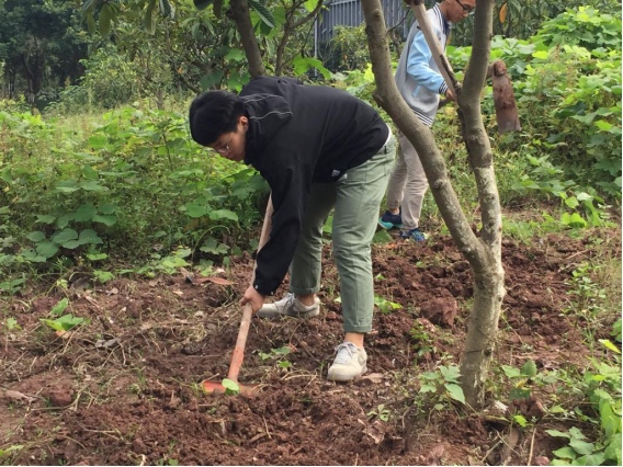 前日的细雨绵绵使得土地格外的松软,但顶天的太阳,沉重的锄具,仍使同学们热的汗流浃背。杂草满地丛生,中间还夹杂着带刺的植物,一不小心就会将手割破。但即使如此,他们却仍然坚持着把活动进行了下去。大家力往一处使,一块颓废的土地已经被翻新,整个队伍的凝聚力在此时慢慢增强。农耕从来不仅是身体的劳累,还是一次心灵的靠近。短暂的40分钟农耕时间很快就过去了,同学们将劳动工具清理干净放回原处,看着自己身上的泥土,却没有一丝抱怨和不耐烦。通过这次活动,同学们懂得了生活的不易和艰辛,土地教会同学们,想要收获就必须要努力。当同学们一起动手去做一件事情,并得到成果时会让大家更加懂得团结的意义。