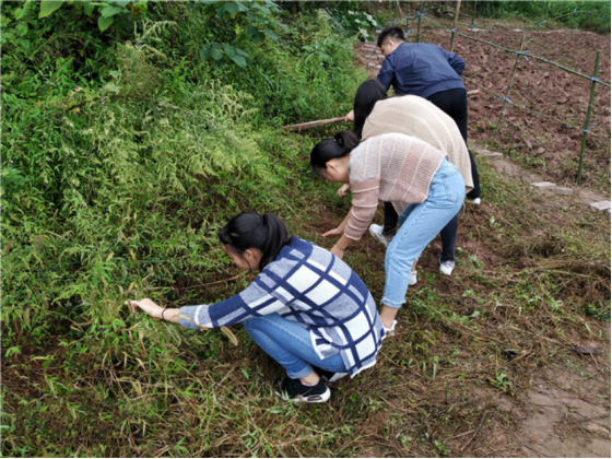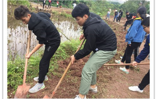 拥一颗草木闲心,盛满微光的眸间,似乎能收尽田园光景。到达目的地后,同学们便开始进行分工,一部分分配到劳动工具的前往农田,进行翻土除草的工作,还有一部分没有工具的同学则领取了除草任务。大家都认认真真的做着自己的工作,毫不含糊,不一会儿农田上的杂草就慢慢消失不见了。虽然正午时分,但这丝毫没有影响到同学们对农耕的热情。他们协助合作,分工有序,遇到带刺的杂草都争着前去清除,表现出了的同学之间的良好友谊。农耕的辛苦在此氛围下显得微不足道,在这里,同学们的一分耕耘带来的不仅是一份心灵的摆脱,更是收获了满满的幸福感。