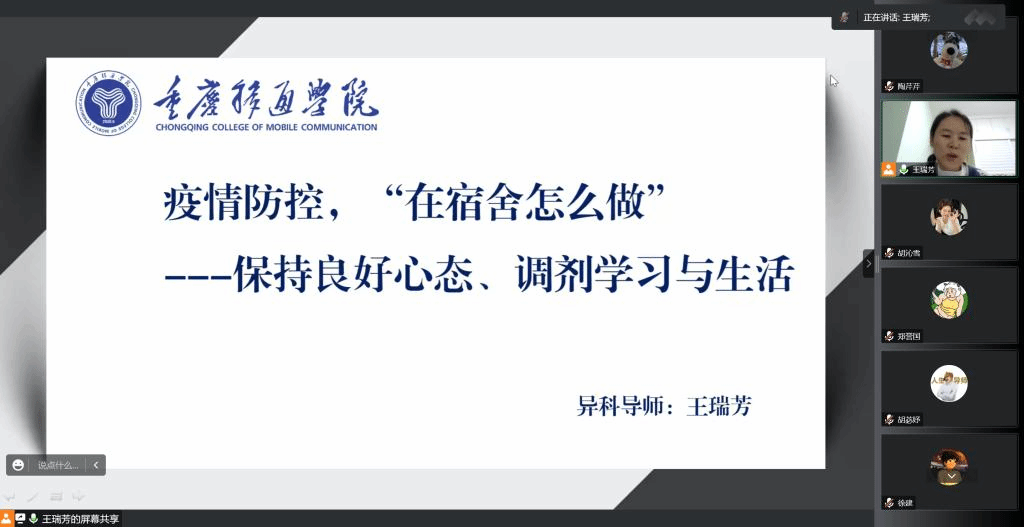 活动中,导师王瑞芳首先和学生交流近两天的学习以及生活感受,倾听学生心声,进行正向的心态引导,强调:“疫情防控,人人有责,一定要遵守学校以及学院的防疫安排与规定。”接着展示最美逆行者-教师志愿者的记录照片,同学们也感受到了,在疫情管控下,学校、学院、大家一起在行动,尽最大努力共同保障师生的健康与正常学习生活秩序,齐心抗疫。