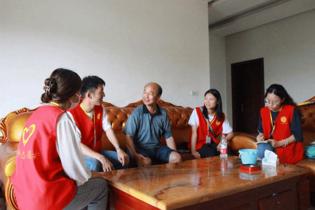“青春向党”红色筑梦队成员分为3组,分别寻访光荣之家、五保户、空巢老人家庭。调研寻访二组去到了一户五保户爷爷家,在和老爷爷的交谈当中,团队得知爷爷独自一人生活,但爷爷却笑着说:“不得慌,我还能活个半把年哩。” 调研寻访三组去到空巢老人家中,李叔叔家因病无法在外务工,经济来源只能靠妻子务工维持,交谈中了解到村委会对其家庭给予了极大帮助和关爱,他们的生活虽然不富裕,但对生活充满了热爱,团队成员也帮助其做了力所能及的家务。