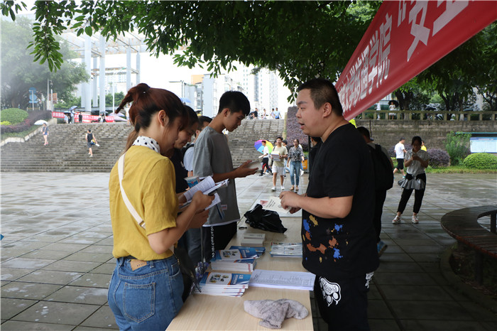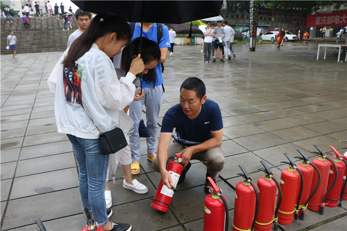 活动现场,同学们积极踊跃的向工作人员询问安全知识盲点。针对同学们提出的问题,现场安全知识咨询的专业人员耐心、细致地为同学们分析、解答并发放安全知识手册,鼓励学生们多提问,向专业人员学习,提升自己的安全意识。同时,在如何正确使用灭火器的学习点,同学们在专业人员的讲解示范下学习并体验了灭火器的正确使用。数据与软件学院数字媒体技术专业的谭璐同学说:“这次的活动提高了自己的安全意识,特别是消防灭火知识。活动中所学到的知识非常贴近生活,能让自己在平时更加注意自身生命财产安全。”
