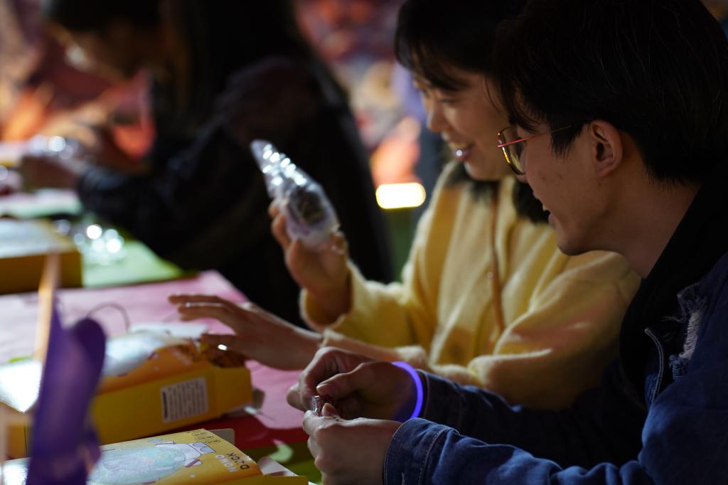 活动伊始,廊桥书院为到场的每位寿星送上第一份童年回忆:带着廊桥书院吉祥物“墩墩儿形象”的盲盒里是大家儿时挚爱的玩具与美食,或者是一只跳跳蛙,或者是竹蜻蜓,又或者是一包久违的臭干子。