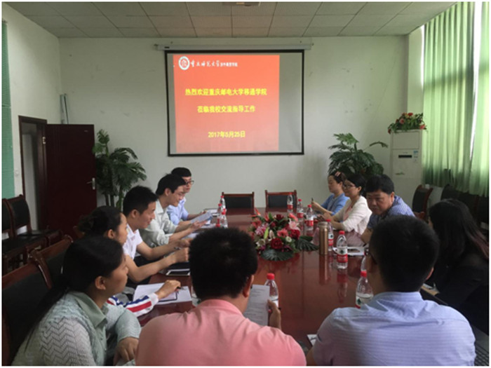 5月25日,我校组织交流小组前往重庆师范大学涉外商贸学院交流学习学生资助工作,交流小组由院长助理周伟带队,小组成员由学生处副处长陈帅、学生科科长王万福、财务处陈玲及各院系辅导员代表组成。重庆师范大学涉外商贸学院学生处处长伍祥伦、学生处办公室主任殷铭、资助管理科李香贞、教育管理科党永春参加了交流会。