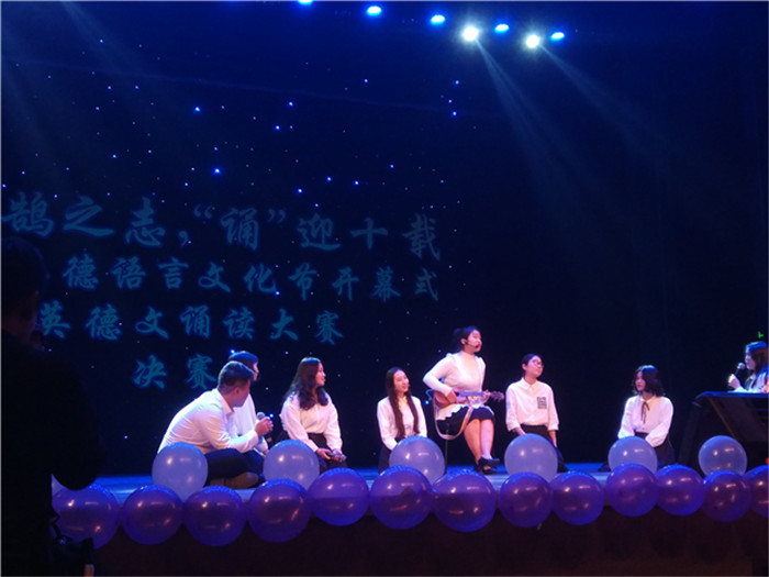一段倾注感情的好的诵读能触碰人的灵魂,打开人的心房。鲁迅先生曾说过:“语言有三美:意美以感心,一也;音美以感官,二也;行美以感目,三也。而这三美我们却可以亲身体验到,实在是一大幸事。本次比赛由移通学院外语系系主任吴世银教授,卢镜囡老师,张旭宁老师,牟娜老师,外教Clive担任英语组评委;熊光源老师,齐菲菲老师,外教Markus担任德语组评委。在主持人介绍完比赛规则后英德文诵读大赛决赛正式拉开序幕。