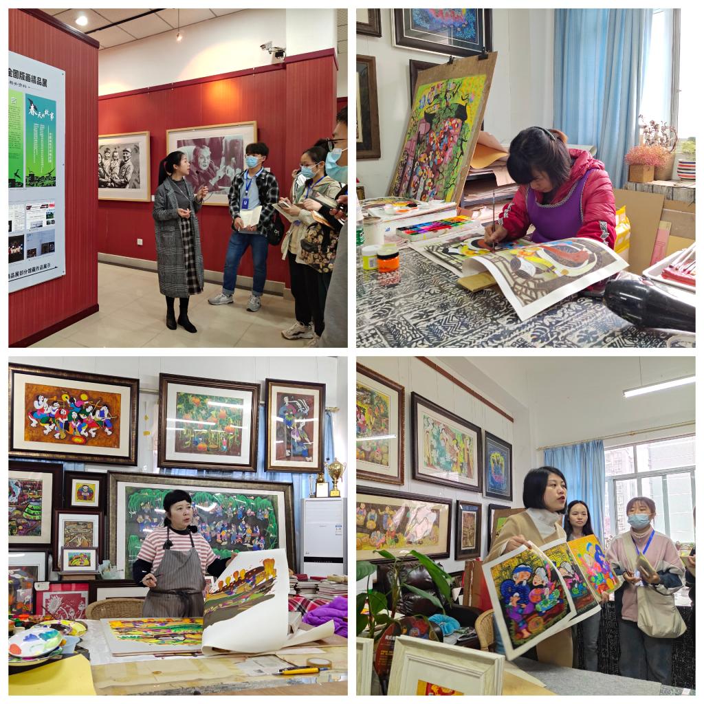 在版画院的李成芝老师、黄袁媛老师和刘月老师的版画工作室里,同学们看到了綦江老、中、青三代版画艺术家的作品,感叹于他们的作品带给人的视觉和心灵的震撼。
