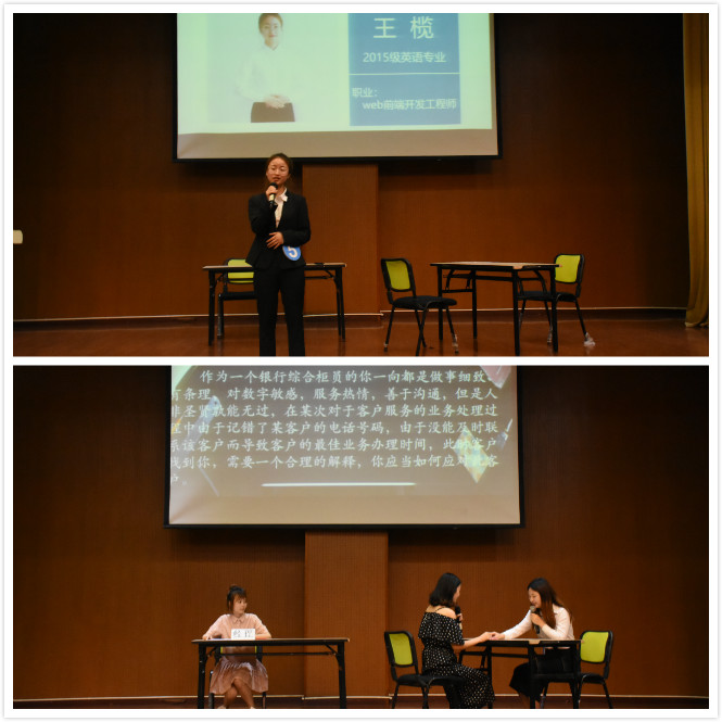 随后,在井然有序的组织下,11位参赛者通过抽签的方式先后上台作出精彩的演讲,内容紧紧围绕主题,各有特色,比赛现场气氛热烈。选手们从自我认知、职业环境分析、职业目标确定、评估与调整几个方面详细阐述了自己的职业规划,充分展现了移通学子朝气蓬勃的精神风貌和锐意进取的新形象,现场的同学们也都在认真聆听,仔细思考。在每人仅六分钟的时间内,参赛者言辞流利,自信不疑,讲述自己过往历程,未来规划和职业目标, 通过职业角色模拟展现自己的职业素养和专业知识。