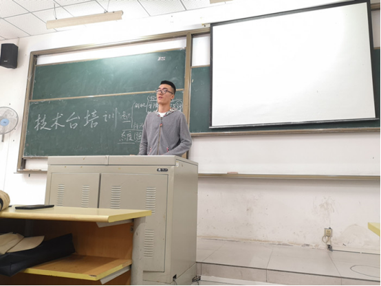 本次培训会由裁判管理中心张豪同学担任主讲人。首先,他问在座的各位干事关于技术台这一工作是否存在疑问或者想法。台下一名参与培训的同学提出,自己记录无法跟上裁判节奏。针对这一问题,张豪同学进行了详细的解答。