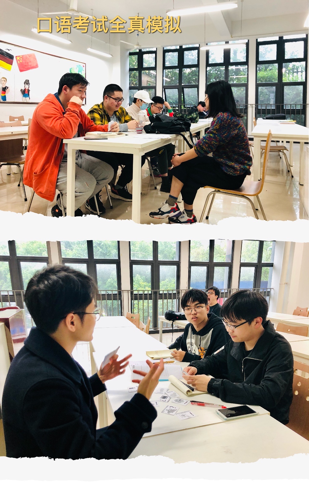 为攻克欧标考试中口语测试这一重难点,在课堂上以及课后为学生开展口语考试适应性训练,给予学生专业的口语辅导;并利用周末休息时间,组织教师开设针对欧标德语A1、A2考试的“考前冲刺班”,为学生们最后阶段的备考提供全方位指导与服务。