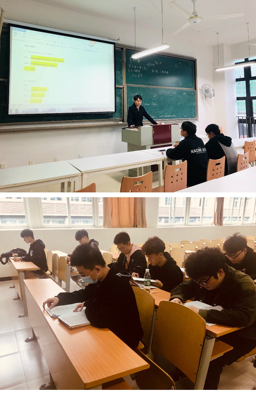 2020级韩林涛同学说到,期中全真模拟测试与周末冲刺班让我更加熟悉了考试流程和重点,解决了关于口语考试的诸多疑惑,对我备考德语A1考试帮助很大,感谢老师们的付出;2018级陈双同学说,周末冲刺班上老师对我们的写作进行了逐个讲解与剖析,使我受益匪浅,我们一定努力复习,通过德语B1考试,不辜负学院和老师们的期望!
