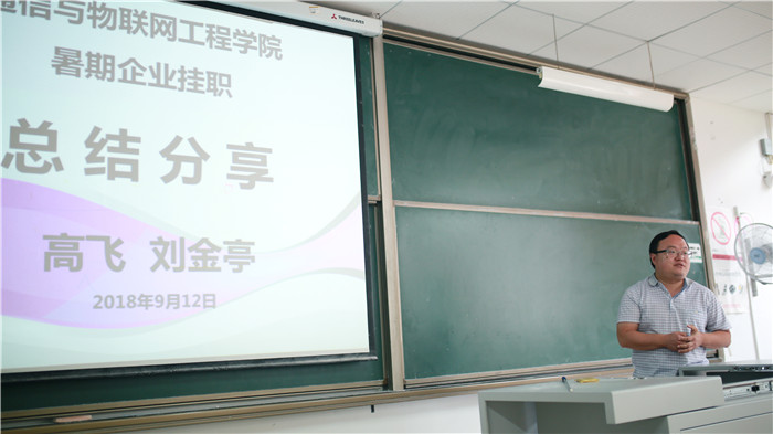 作为暑期在校企合作单位挂职的教师代表,高飞老师分享了企业挂职的好处和此次挂职的工作内容。高老师在本次挂职过程中,主要有三个方面的任务:企业实验箱及实验手册的学习和借鉴、新生研讨课的课题准备、参与企业日常工作。最后,高老师用四个词总结了自己挂职经历的感受:坐井观天、夸夸其谈、有眼无手、空杯心态。教师在学校里接触都是理论知识,普遍动手能力较弱,所以不要以为自己什么都懂就不学习,反而应该利用校企合作单位挂职的机会将理论和实际应用更好的结合在一起,提高自身知识水平,加强教学技能。