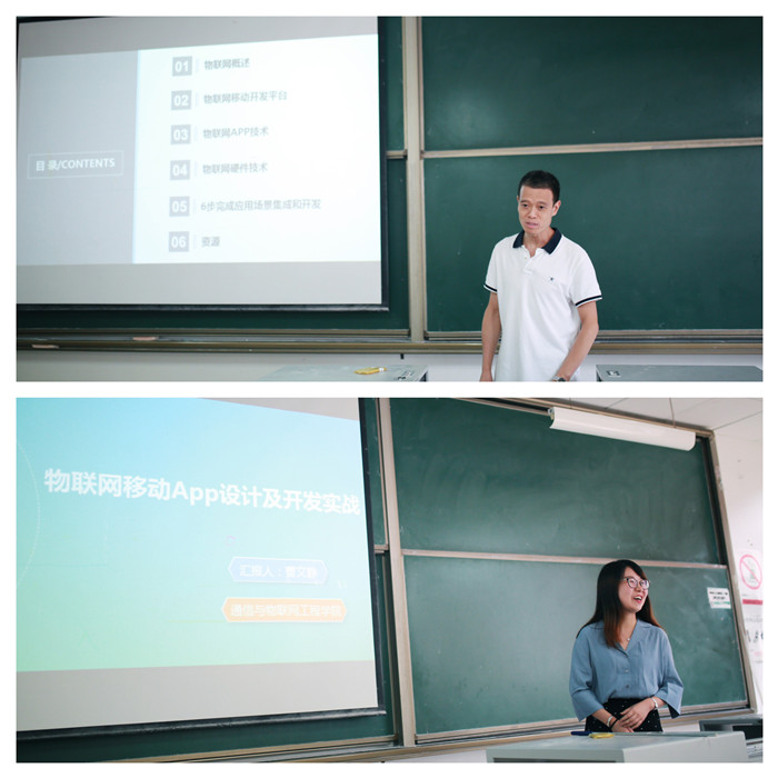 “物联网移动APP设计及开发实践”则是曹文静老师参加培训的内容,除了分享自己的培训内容,曹老师还讲了自己的心得体会。曹老师指出本次培训让她对物联网有了更深的理解,还接触到了之前没有涉猎的领域,学到了更多的新东西充实了自己,在今后的教学工作中,可以有效结合物联网并且结合移动APP开发,让学生学习到新知识并对自己的学习产生新方向。