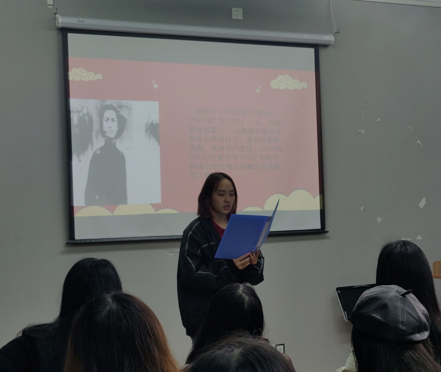 激烈的问答过后,2021级广播电视编导1班的四位同学带来了精彩的党史英雄人物分享。他们分别介绍了毛泽东、刘胡兰、李先念、周恩来的革命故事。百年风展红旗如画,百年峥嵘岁月如歌。每个分享的故事或是满怀希望的热烈歌颂,或是满心敬佩的苦思沉吟,都展现了对先辈们的由衷敬佩和真切追思。百年峥嵘岁月,百年砥砺奋进,故事让人认识到中国共产党团结带领中国人民进行的一切奋斗、一切牺牲,一切创造,归结起来就是一个主题:实现中华民族的伟大复兴。同学们听得津津有味,对革命前辈们感情,对伟大、光荣、正确的中国共产党的感情又加深了几分。