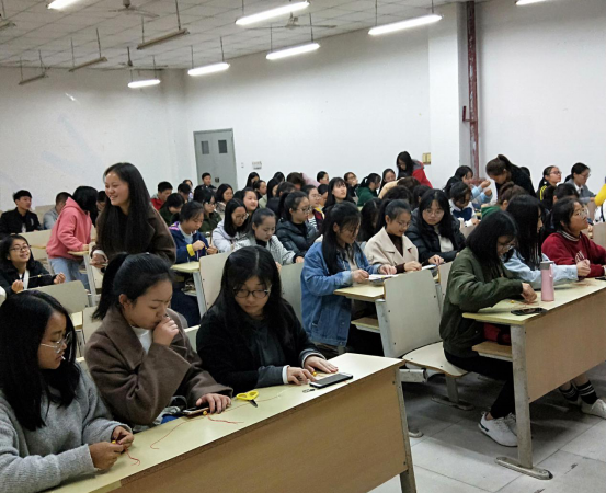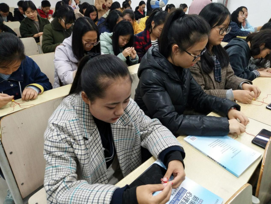 活动在培训部的指导下拉开序幕。学员们带着止不住的笑意开始行动起来。那专注的神情认真而又严肃,让刚刚还热火朝天的教室渐渐变得庄严肃穆。大家一个一个的都屏气凝神,仔细地看着讲台上的教学,生怕错过哪一步。手里动着,眼里看着,满满的全是认真与激情。