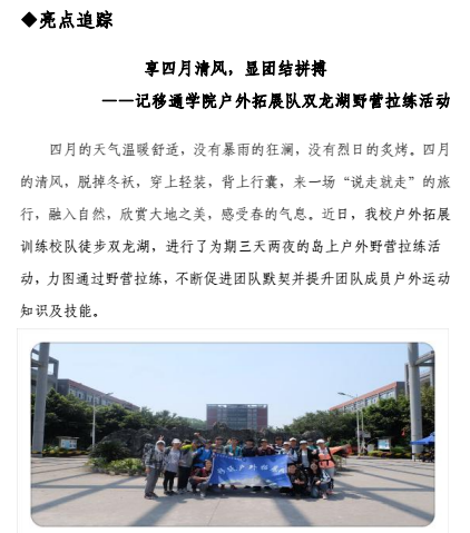 享四月清风,显团结拼搏——记移通学院户外拓展队双龙湖野营拉练活动