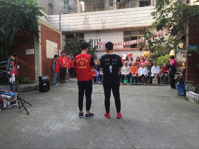 伴随着主持人的开场,献给老人们的表演节目就此开始了,首先是我们志愿者们带来的歌曲演唱,虽然由于一点小小的意外没有伴奏,但还是丝毫没有影响到活动的开展,老人们也乐得看我们表演。