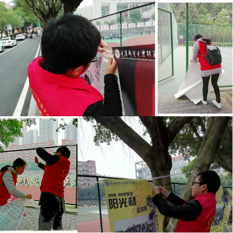 志愿者们在教室中穿梭维护着校园卫生,也帮助同学们收集遗失的物品,通过志愿者整理后的教室干净而又整洁。活动中志愿者们共清理教室约110间,拾到课本7本、眼睛7副、雨伞2把。负责马路海报的志愿者同样在认真履行着自己的职责,看到一张张脱落或张贴不合格的海报就主动扶正,根据海报的粘贴日期,将过期海报丢弃,做到“有始有终”,共计扶正18张海报,摘下过期海报13张。真正让海报成为校园歌声中那一道亮丽的风景。