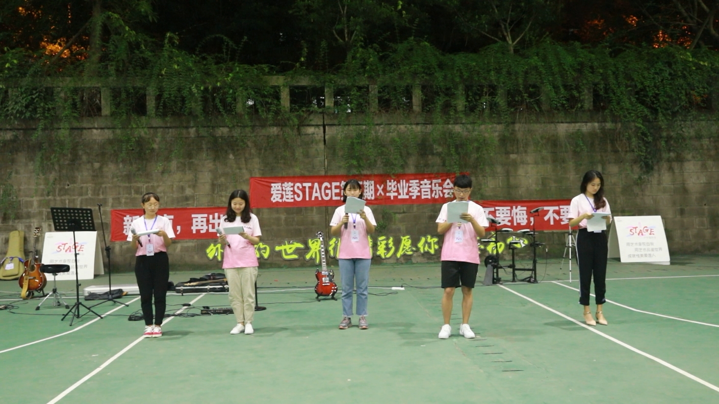 音乐会的最后,来自爱莲书院的五位同学以音乐诗朗诵的形式献上了对毕业生们的寄语。大四的学长学姐们,希望来自大一、大二、大三的学弟学妹们的真挚祝福,随着音符的律动传至四面八方,走进你们的心坎,伴你踏上征程。后来已来,我们已不再。再见,或许是最短的金玉良言。外面的世界很精彩,愿你不忘初心,新起点,再出发,不要悔,不要怕!