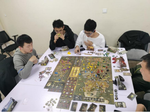 友谊的小船说翻就翻,友谊的大船说起就起。同学们早上十点便开始此次桌游。同学们每走一步思虑良多、小心谨慎。周健雄同学与谭清雨同学分别为“玫瑰家族”与“太阳家族”,共同占据大陆的南端,两两联合,对其他家族重拳出击,一路向北延伸势力。而此时彭淼社长率领的“北狼家族”顺势南下,将“巨鹿”,“乌贼”,“狮子”三个家族团团包围,三大家族被迫联手。而此时大陆另一端的“龙”家族蓄势待发。趁此机会,陈宇同学率领巨龙出击,巨龙的火焰施虐着整个大陆,此时其他家族犹如囊中之物,不堪一击。陈宇同学养兵千日,用兵一时,前期的蛰伏,就是为了现在的一举获胜!最终陈宇同学赢得了这局游戏的胜利,成功让自己的家族坐上了大陆的王座。