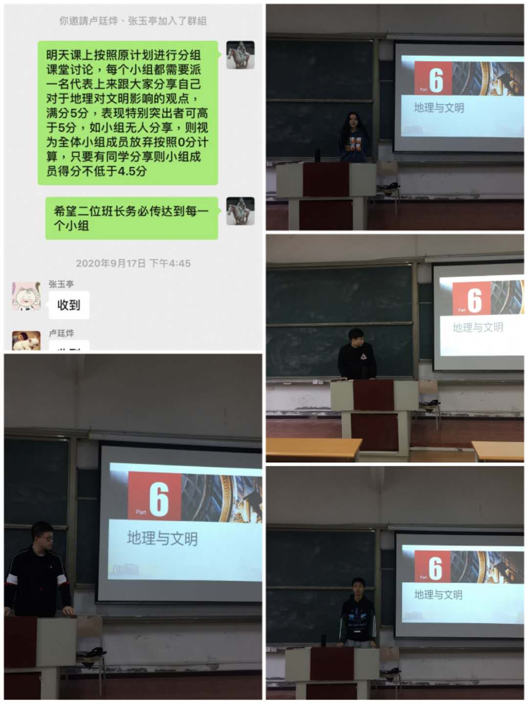对于以上同学的发言,李博文老师予以了肯定。他点评道:“通过以上同学的发言,可以看出大家是做了比较充分的准备和功课的,这种良好的学习习惯,希望大家能够在今后的学习和生活中坚持下去。通过同学们的发言,我看到你们很多人都可以辩证的、发展的看待地理环境对于人类文明的影响,这正是唯物史观所提倡的,你们能够通过自主学习认识到这一点很好,也很了不起。这一点不仅仅对你们学习这门课程大有裨益,对你们日后如何规划职业生涯,如何进行职业选择都有着很积极的意义”。