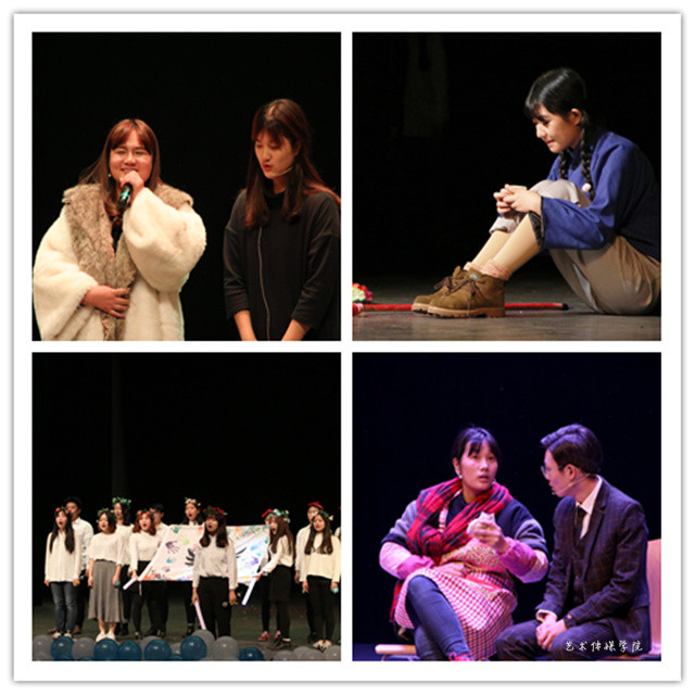 首先出场的2015级广编5班根据当前网络最红的PPAP改编的《失恋PPAP》舞蹈剧给同学们带来新的惊喜,每个班级成员都带有帽子,男女生搭配跟着节奏一起舞动青春!2016级小鲜肉们带来的舞台剧《父亲》则通过讲述一个不懂事大学生通过见到家人为自己的付出而幡然醒悟的故事,剧情贴近生活,引发了在场同学们的强烈共鸣!《非常完美二》和《08版泰坦尼克》两个小品和舞台剧则让在座的每个人都不得不赞叹同学们的脑洞,剧情、演技、主题每个环节都让人不禁竖起大拇指!
