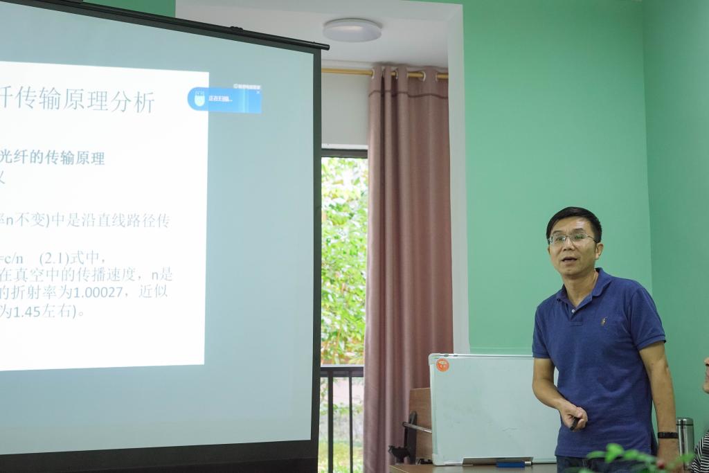 杨卫华老师讲授的则是光纤通信的基础内容,杨老师的语句严谨连贯,讲授内容重点突出,通过对图、公式的分析将光纤的理论基础进行讲解。原本枯燥无味的公式在杨老师的讲解下也显得格外可爱,从理论上进一步加深了对光纤通信基础的认识。