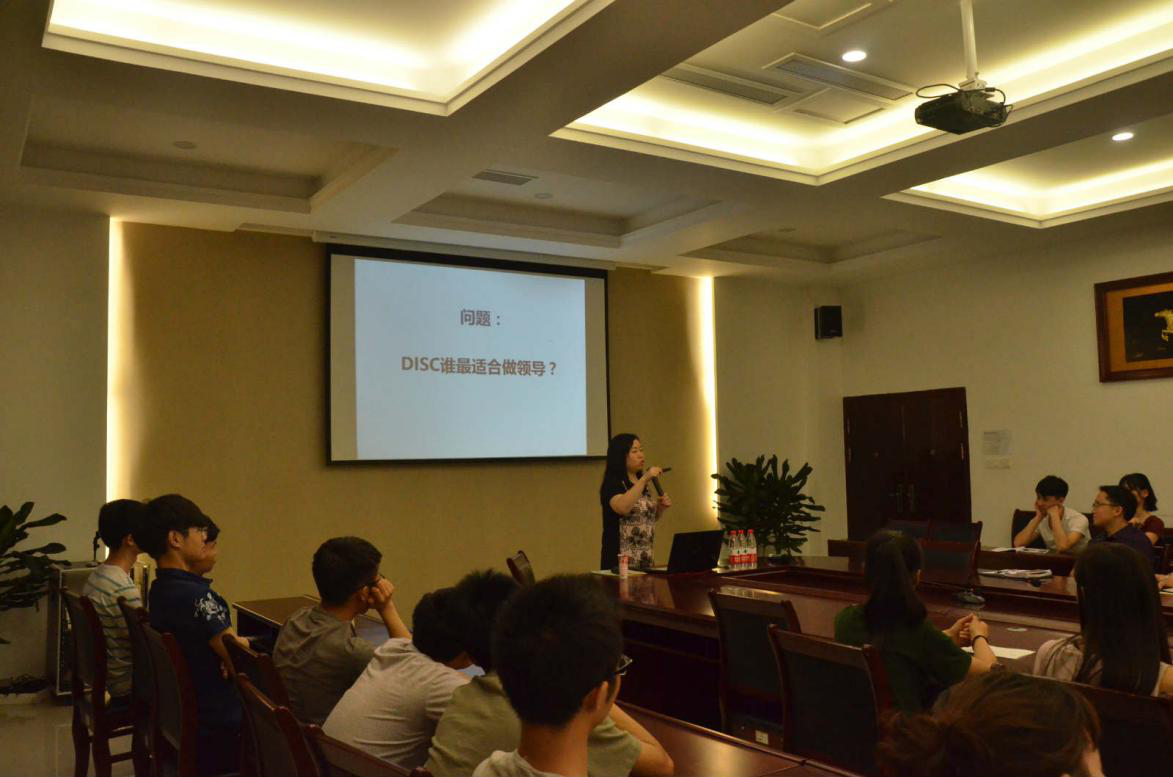 时间过去了一半,胡老师开始为我们分析DISC的测试性格。D(帝)是指挥者,I(爱)是影响者,S(士)是支持者,C(思)是思考者。同时胡老师用风趣幽默的话语来为我们阐述了该如何与这四类人交往与相处。并提出了这四类人并非一成不变的,而是可以在不同的时刻与环境中改变自己。接着胡老师向我们提出“DISC中谁最适合做领导?”,每个人都回答了不同的答案。胡老师却说我们所说的答案便是我们现在所处团体中的领导是这类性格,这就是所谓的环境铸就性格。